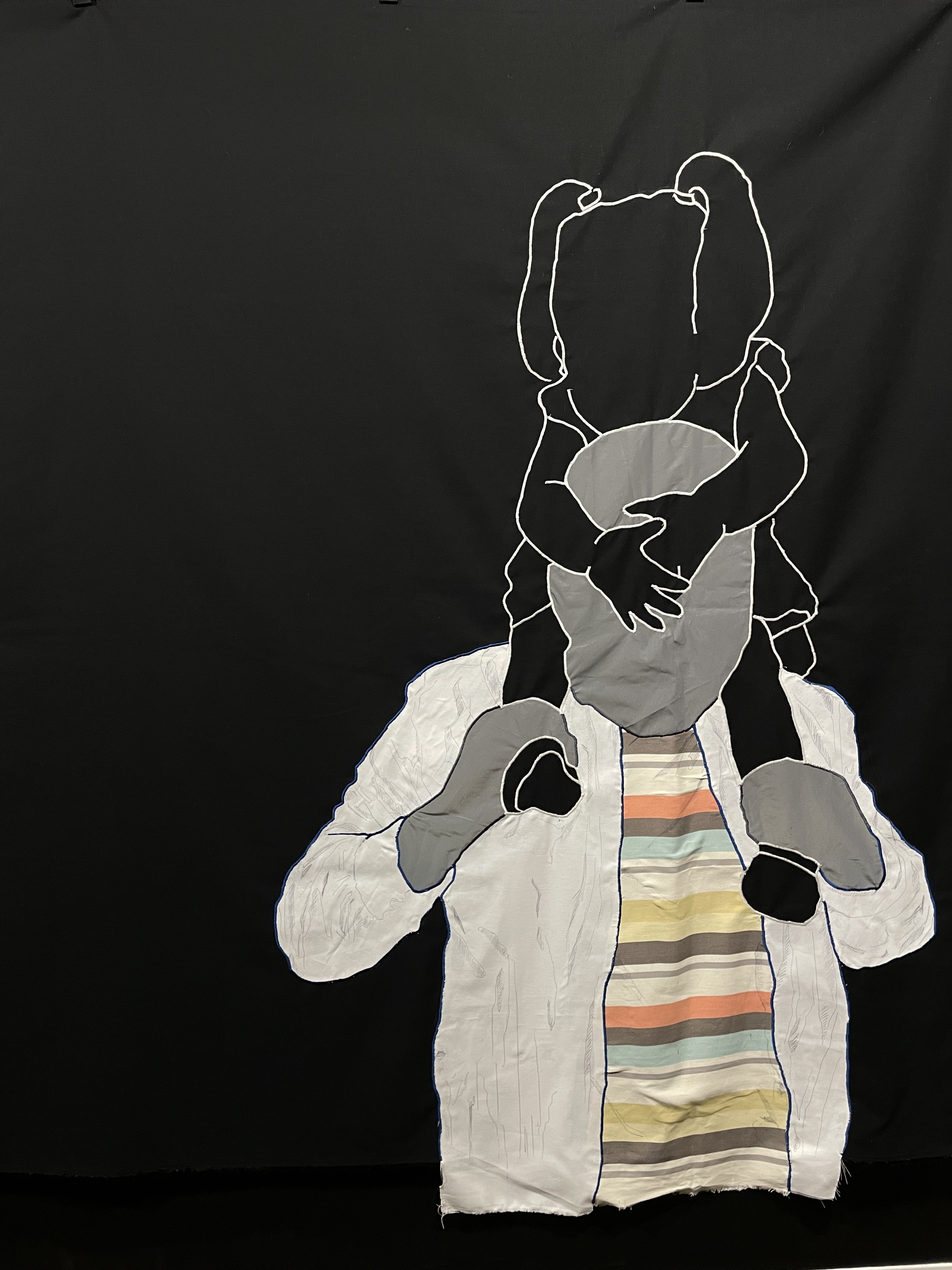 In the gallery’s Viewing Room, Arleen Correa Valencia employs textiles and works on paper to tell the stories of families crossing the border. In her exquisitely sparse and potent compositions, Correa Valencia uses silhouettes of parents and children to outline chapters of painful separation and transcendent emotional intimacy. These trace the pattern of migration, loss, and mending from her own history. The title of the show is drawn from a letter written to her father in 1996.