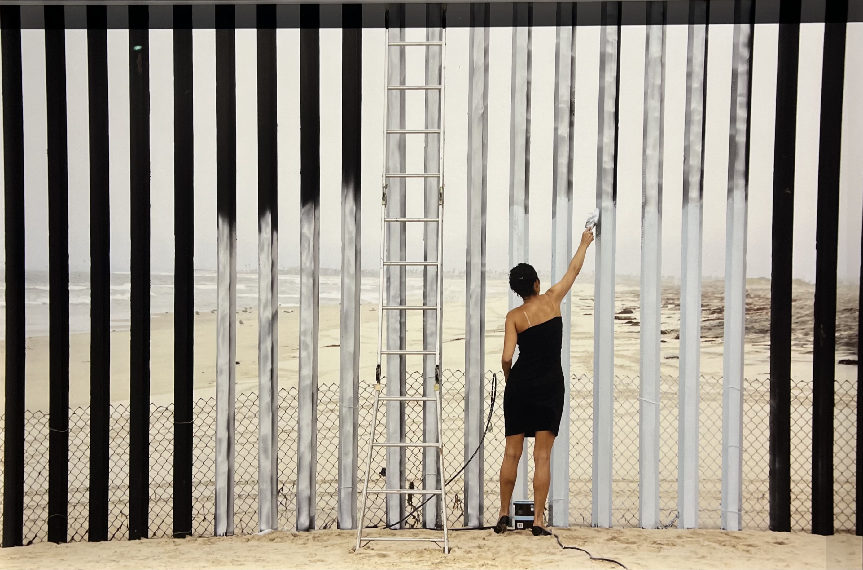 Fernandez wipes away psychological barriers when she challenges physical ones. She tears down the unconscious loss that othering erects and restores lost connections. In addition to rewiring the channels of human empathy, this body of work, Borrado La Frontera (2011/2021) fosters an ecological recovery by enabling the viewer to witness the boundary between the natural world and ourselves “vanish” from this otherwise pristine section of beach.