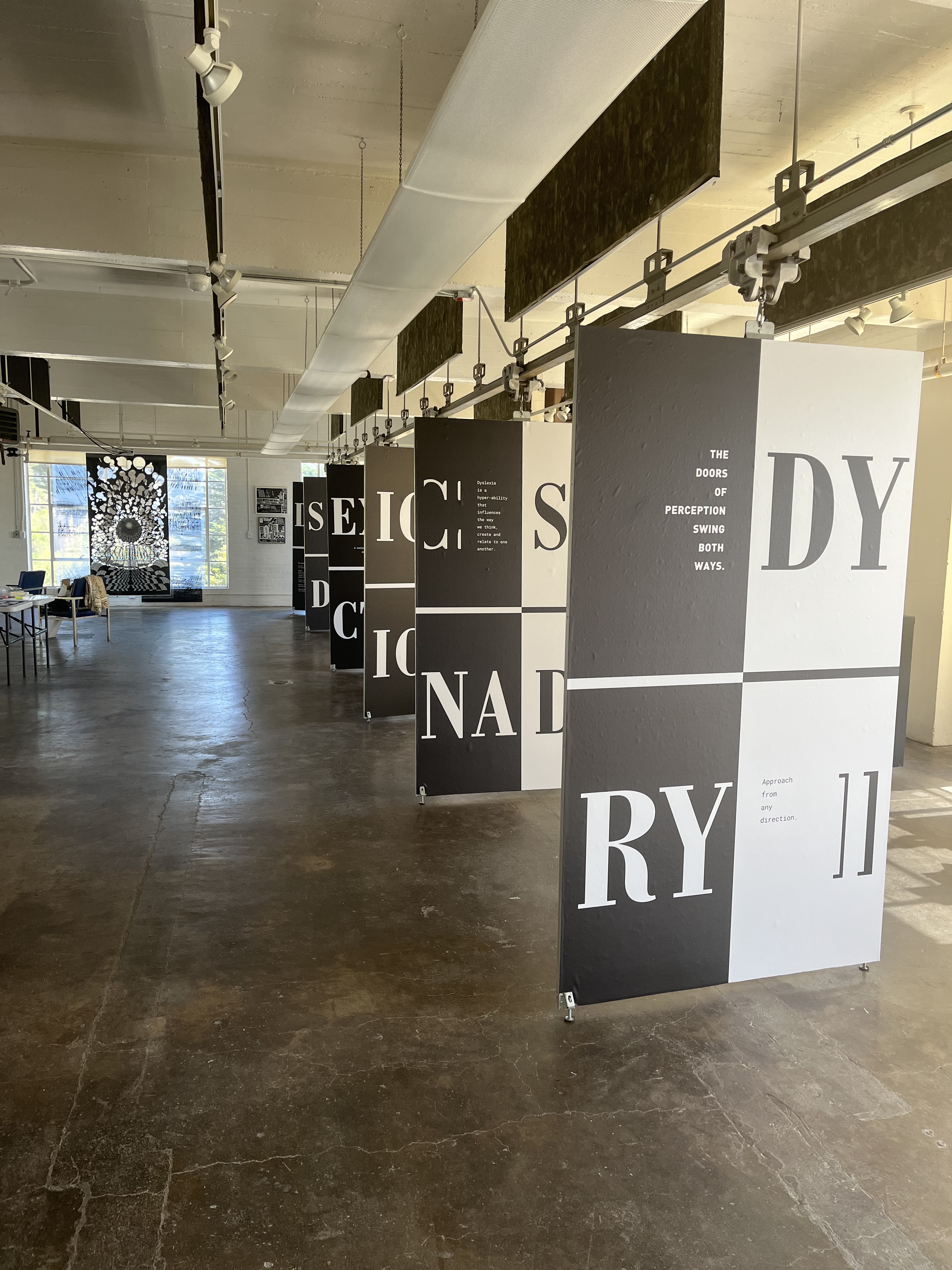 October 22nd sees the opening of the Dyslexic Dictionary Exhibition at Arion Press in San Francisco. Our goal in establishing a gallery program at this unique institution is to cultivate, celebrate, and showcase the enduring dialogue between writers and artists that has been fundamental to each of the conceptually unique handmade books we’ve created over the years. As the first curator-in-residence, I’ve sought to use our gallery space as a hub for creatively curious people to come together around the ideas and images that challenge us to pay greater attention to the world around us and how we move through it. As with any great story, the text on the page is only the beginning. Looking beyond the text to new horizons of creative innovation is the central driver behind this, our final show of 2022.