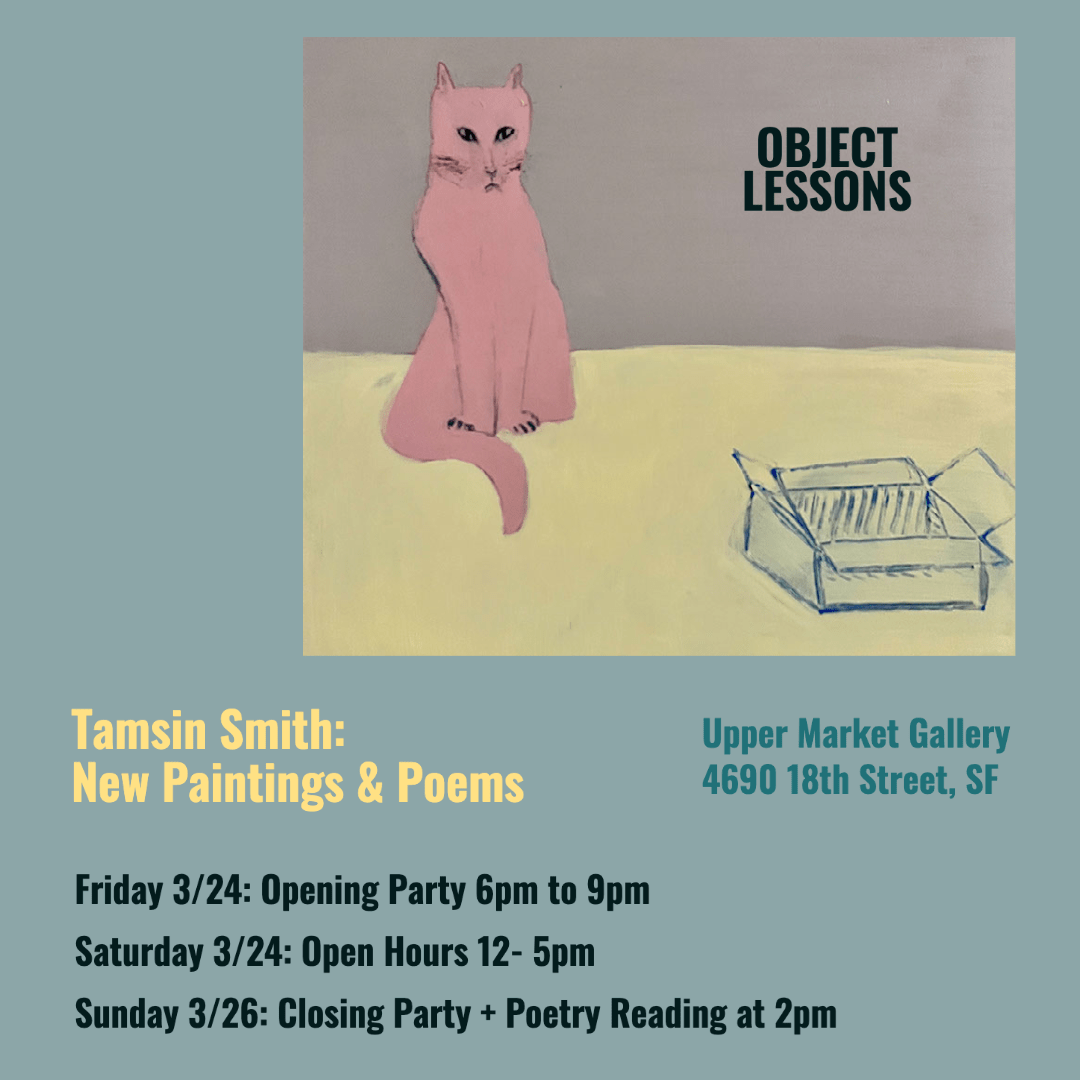 I’ll be showing a new body of work that I’m calling OBJECT LESSONS at Upper Market Gallery the weekend of March 24-26. To celebrate the exhibit, I’m also creating a limited edition of 50 hand-bound chapbooks of recent poems. Titled Sister Shine, each chapbook is hand-painted and unique. Here’s the run of show for the weekend and here is a link to the invitation. Special thanks to curator Matt Gonzalez.