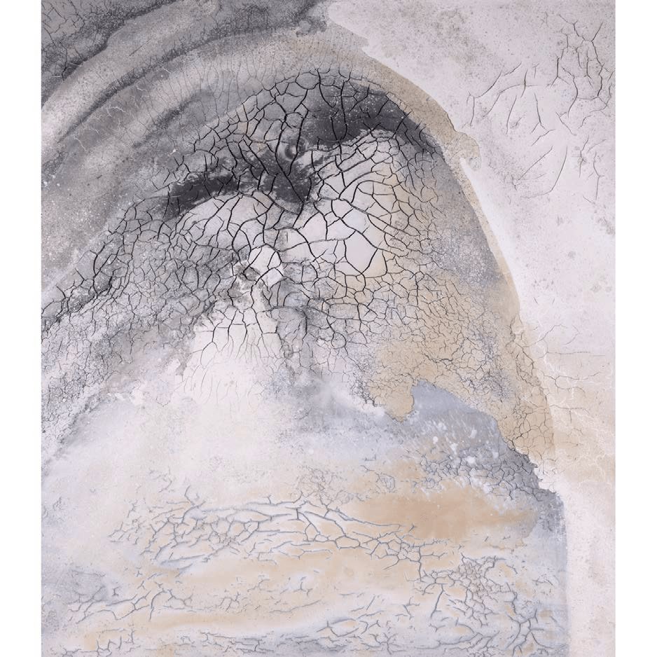 Danae Mattes, Of Water, Dust, and Light, V, Clay and mica on canvas, 66 x 65 in