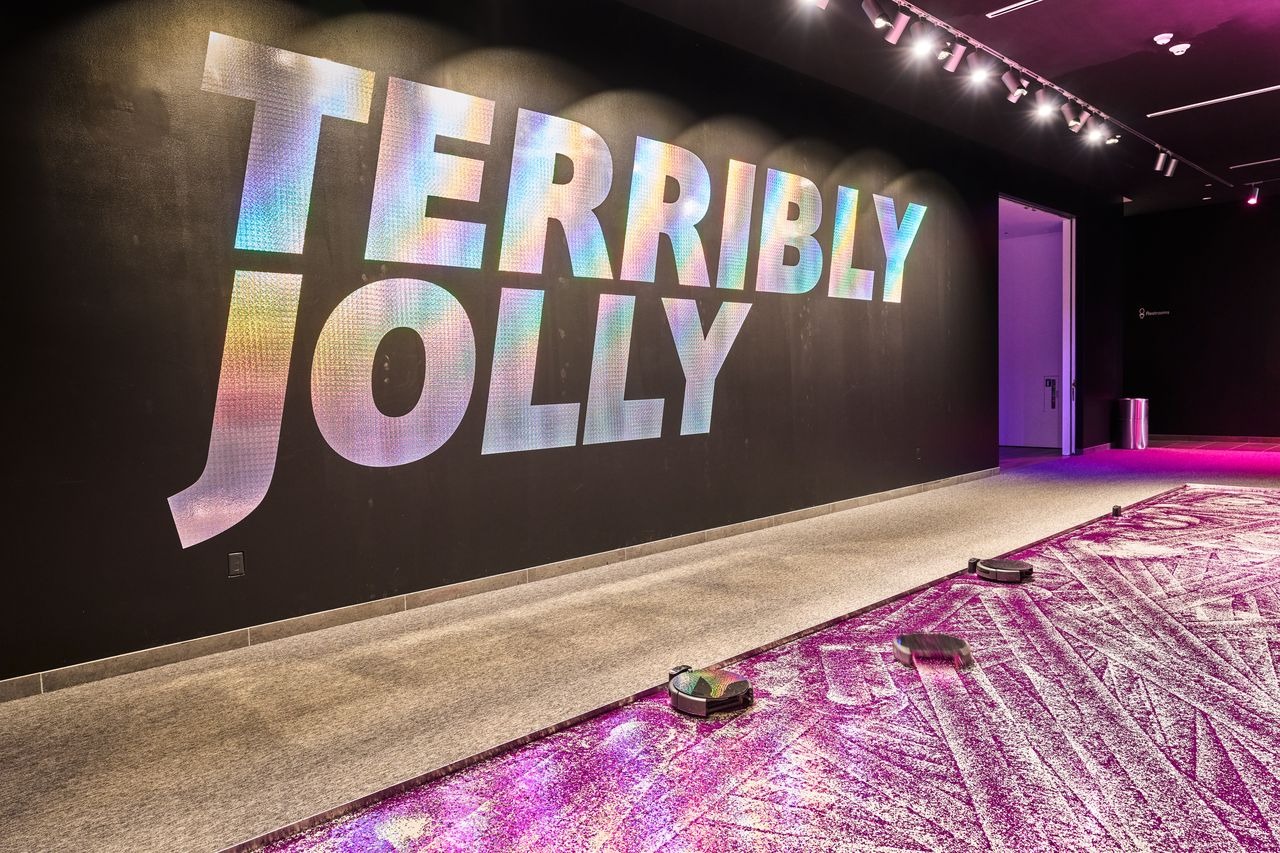 The exhibition ends where raves often do: in glitter and aftermath. In Puff Out, :mentalKLINIK unleashes robotic vacuum cleaners across a floor blanketed in sparkle. The machines wander, redistribute, and refuse the notion of cleanup as closure. A rave, it seems, doesn’t end; it simply disperses. The traces it leaves behind resist containment. This is a revolutionary concept.